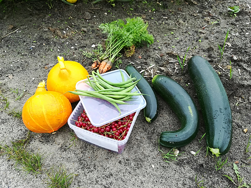 Bessen, boontjes, bijzonder grote courgettes en bruine zonnebloemen