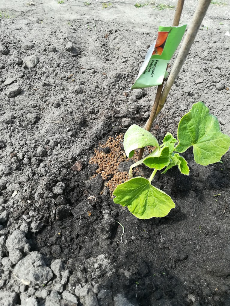 Een pompoenplant met knik