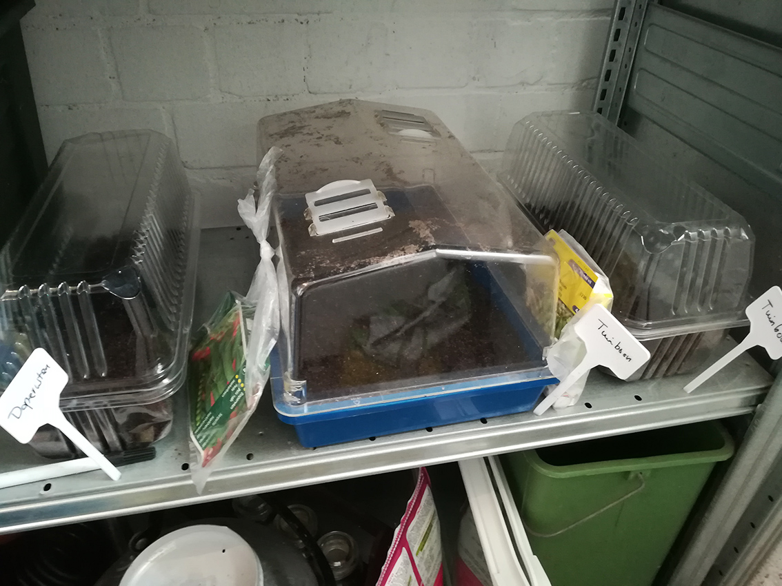 Annemarie zaait tuinbonen en doperwten
