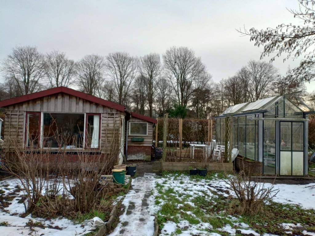 Maar het nemen van het besluit is wel gemakkelijk geworden door een heel welkome gebeurtenis: na bijna 3 jaar wachtlijst is er een super mooie Volkstuin beschikbaar gekomen. Ons Buitenverblijf, want zo gaan Corina en ik het noemen, ligt op Volkstuinderscomplex “Zonder Werken Niets”. Vrijdag 26 januari gaan we het contract tekenen en ontvangen we de sleutel. Verleden week zijn we wezen kijken, en heb ik de eerste foto’s geschoten. Zie hier de eerste beelden van onze tuin. Behalve een mooi huisje, hebben we straks ook een hele mooie kas tot onze beschikking! Nooit meer voorzaaien in bakjes in huis, maar georganiseerd (dat gaan we proberen in ieder geval).