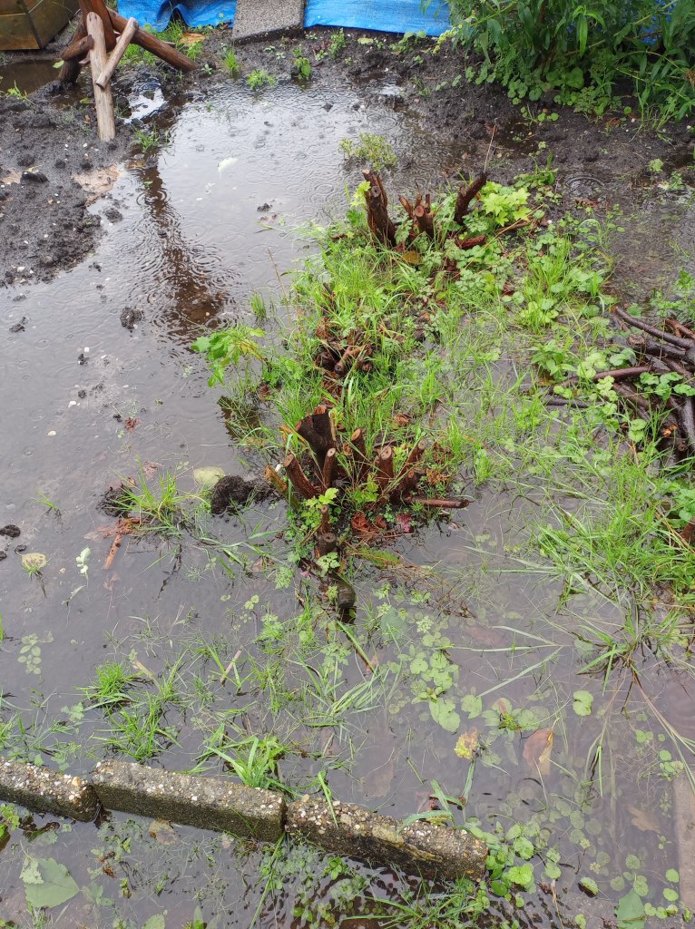 Niet iedereen is op de hoogte dat Corina en ik hebben besloten met de tuin te stoppen. Het onophoudelijke hoge grondwater, het niet willen aanslaan van planten en groenten, het niet kunnen zetten van fruitbomen (door de hoge waterstand) en het niet aflatende gevecht tegen het onkruid zonder dat daar een geslaagde beplanting tegenover kan staan, heeft ons doen besluiten deze tuin op te geven.