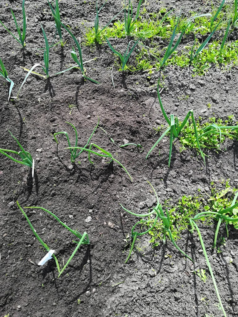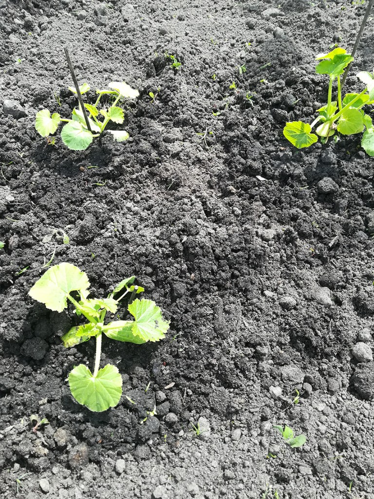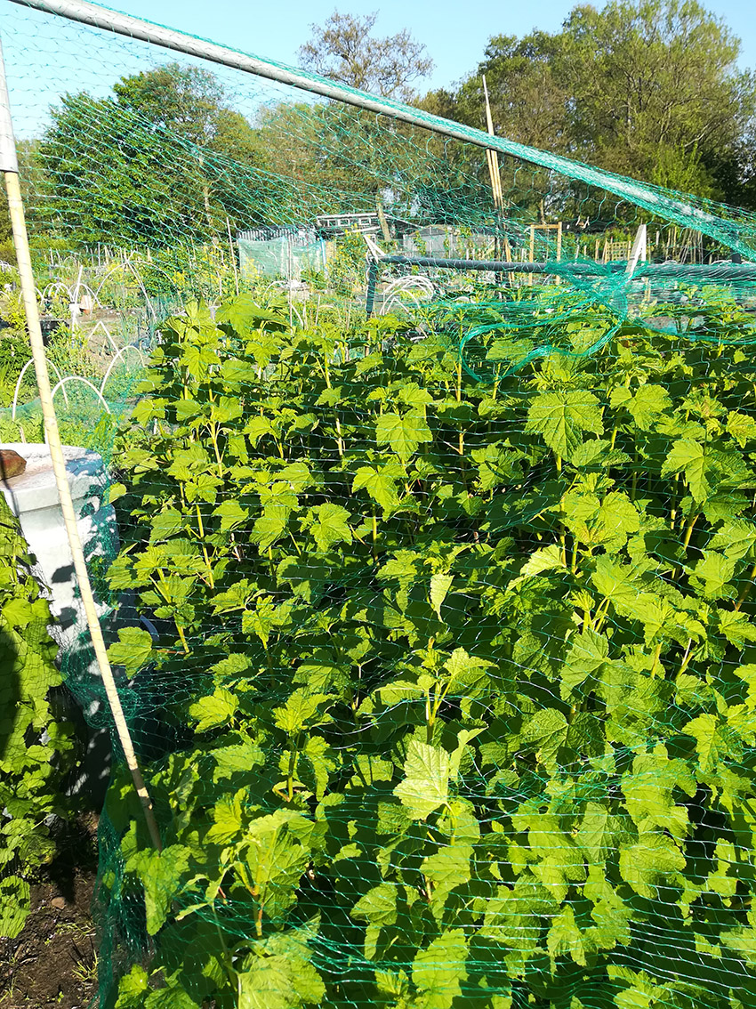 En de courgetteplanten die ik ’s morgens van hun plastic bescherming heb ontdaan, omarmen de warmte van de zon. Je ziet ze bijna groeien! ’s Avonds hebben Corina en ik de aalbessenstruik samen afgedekt. Ook daar is wat moois in aantocht. Nu nog zonnebloemen zaaien, en pompoen.